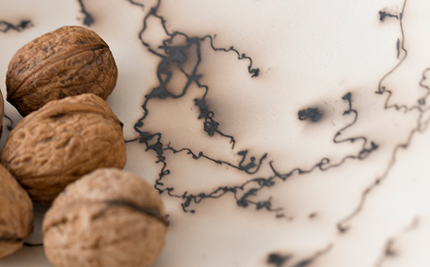 « Je recevais, de vous, des bijoux indiscrets, Un collier finissant en larmes sur mes seins Et l’éclat d’un frisson du tout premier baiser Glissant amoureusement en cascade sur mes reins. » Porcelaine blanche, terre noire. Toutes les perles sont roulées à la main. Certains bijoux sont agrémentés de pierres naturelles (lapis lazulis, tourmaline etc) Les chaînettes et autres accessoires sont en plaqué or 3 microns ou argent massif...
